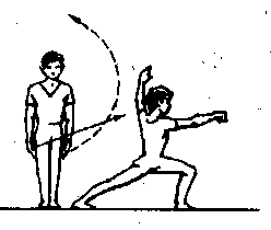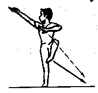[教材要点]上架时拧臂(内旋)屈肘,上体尽量扭转。